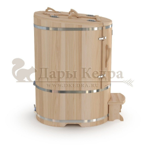 Овальная фитобочка из кедра - это мини парная, которую можно использовать не только в спа-салонах, но и дома. Овальная модель более просторна и удобна в использовании. Толщина стенок составляет 25 мм. Верхний скос делает положение головы более комфортным и улучшает обзор. Она оборудована откидными створками, дверцей и отверстием для головы. Во время парения человек сидит внутри кедровой бочки, а голова находится снаружи. Благодаря этому исключается возможность перегрева. Подлокотники из кедра, встроенные ручки на створках и двери делают эксплуатацию более удобной.