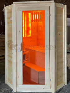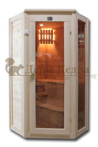 Одноместная угловая финская сауна кабина из кедра и липы с электрокаменкой